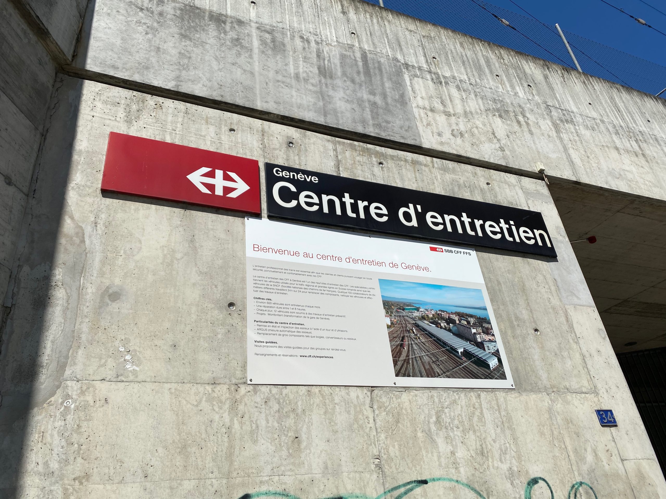 Centre d’entretien CFF GenèveInauguré en 1999, avec le slogan sur la façade « entre tiens à Genève ». Localisation Photos du bâtiment (1) 2020-07-25_12-04-51