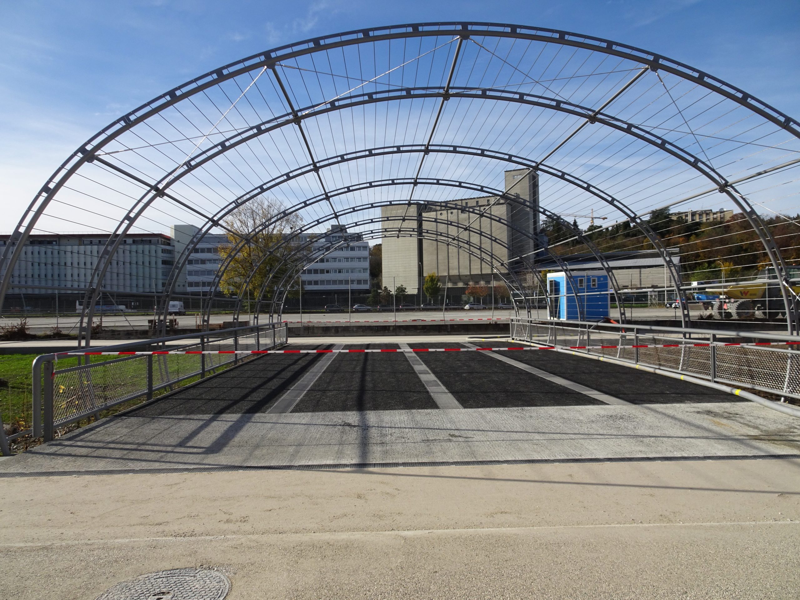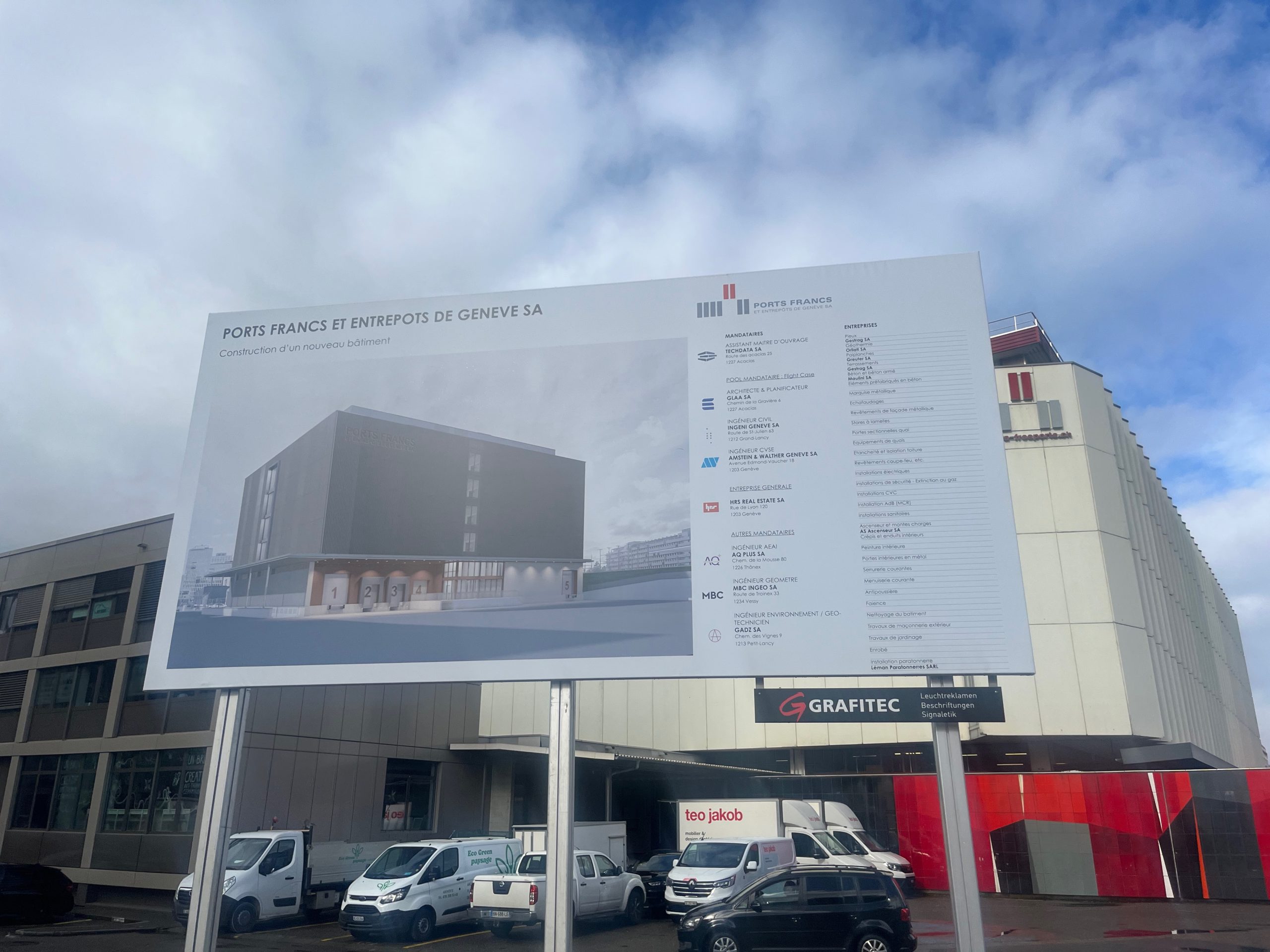 Immeuble construit en 1957 et en 1968 par Arthur Lozeron et Marc Mozer et Jean Erb. *Auparavant : les ports francs sont disséminés entre Rive, Cornavin et la Renfile. *1954-1957 : Construction du silo par Arthur Lozeron et Jean Erb *1965 : Installation des Ports-Francs à La Praille. Oeuvre d’art de Jean Baier le long du mur, côté Route de Grand-Lancy. *1961-1968 : Construction des ports-francs par Arthur Lozeron, Marc Mozer et Jean Erb Depuis la création, le site est en constante modification et agrandissement.[1][2][3]