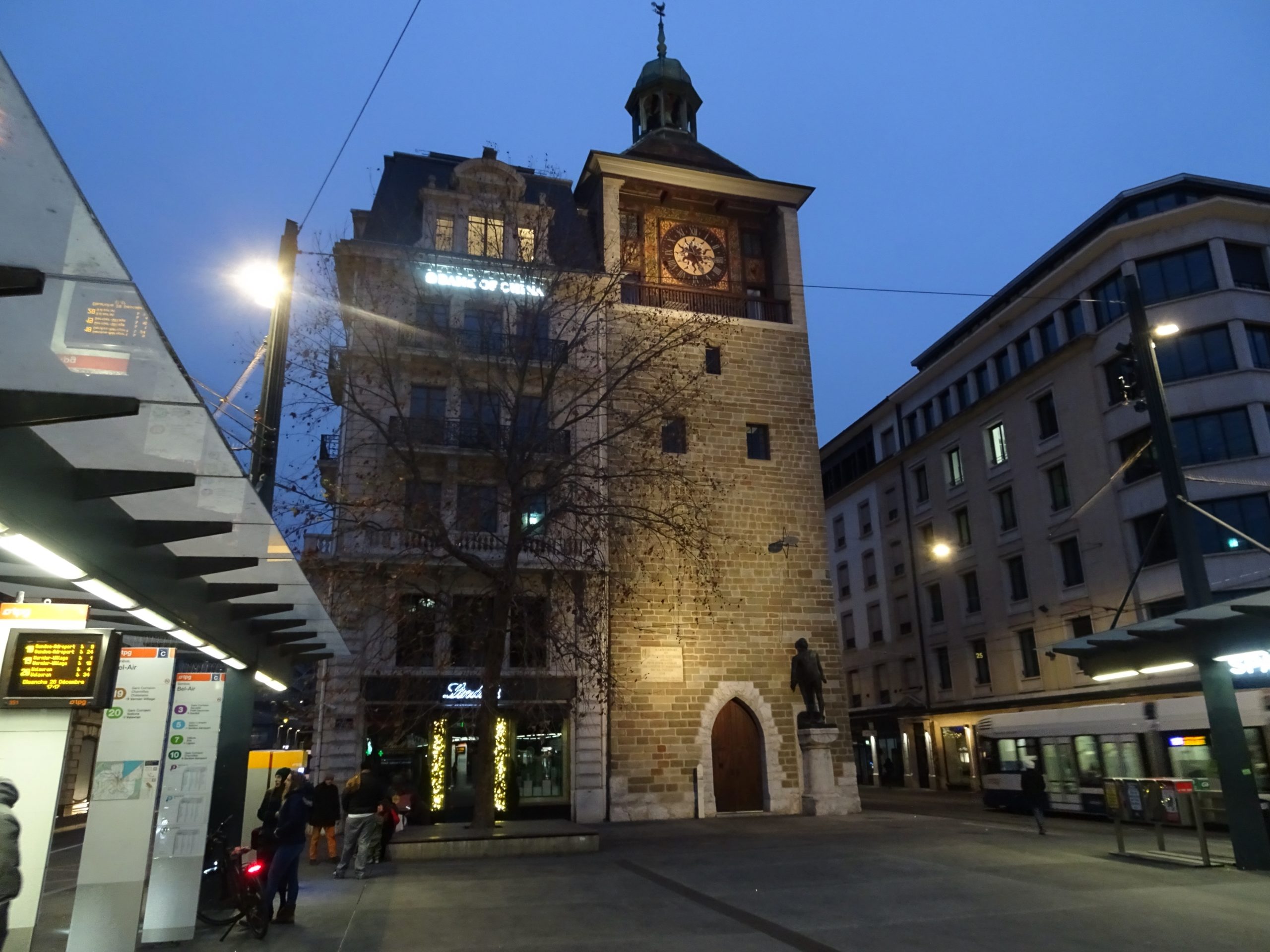 ===Chateau=== Le château a été construit en 1227 puis reconstruit à plusieurs reprises. A l’époque, l’ouvrage est en dehors de Genève et garde le pont du Rhône ainsi que le trafic fluvial. Durant le moyen-âge le château perds en importance et se fait englober dans la ville lorsque Saint-Gervais rejoint Genève. En 1921, le bien est classé. Immeuble construit en 1896 par Edouard Henri Arthur. Redondance architecturale. Vitrail dans l’escalier d’Enneveux & Bonnet (1897). 2è prix ex æquo au concours de façaes 1902. La tour de l’ìle est conservée et surélevée en 1898, avec adjonction d’un horlooge. *1909 : Statut à Philibert Berthelier (Enquête par Edmond Fatio, réalisation par A. Regazzoni). de style néo-renaissance <ref>Cité dans L’INSA, Inventaire Suisse d’Architecture 1850-1920, volume 4 (1982)</ref><ref>Cité dans « Le Grand Siècle de l’architecture genevoise », édité par la société d’art public, page 224</ref>